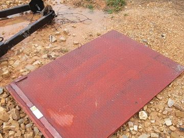 hydraulic alley, sweep tub, portable with hydraulic jacks, rebar floor in chute, 32' transport length, 40' working length, sweep tub has 9' radius gate, powder coated North American steel. 220V electric or 13 HP gas power unit